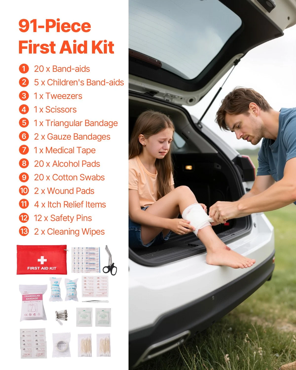 32 Pcs Car Emergency Kit With Medical Emergency First Aid Kit For Vehicles